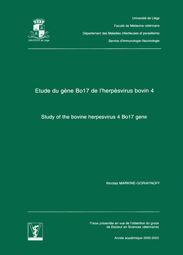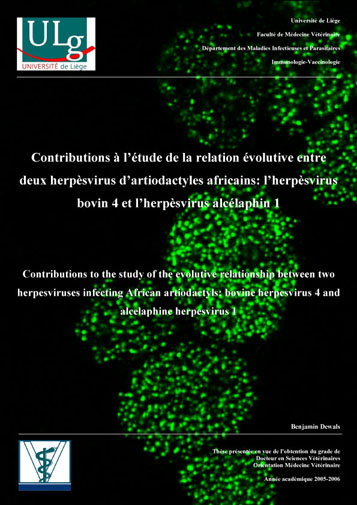 3. « Natural antibody-complement dependent neutralization of bovine herpesvirus 4 by human serum ». Machiels B., Gillet L., Do Nascimento Brito S., Drion P., Delforge C., Nizet Y., Gianello P., Bona C., Costes B., Markine-Goriaynoff N. and Vanderplasschen A. Microbes and Infection, (2007), 9, 1530-1537.